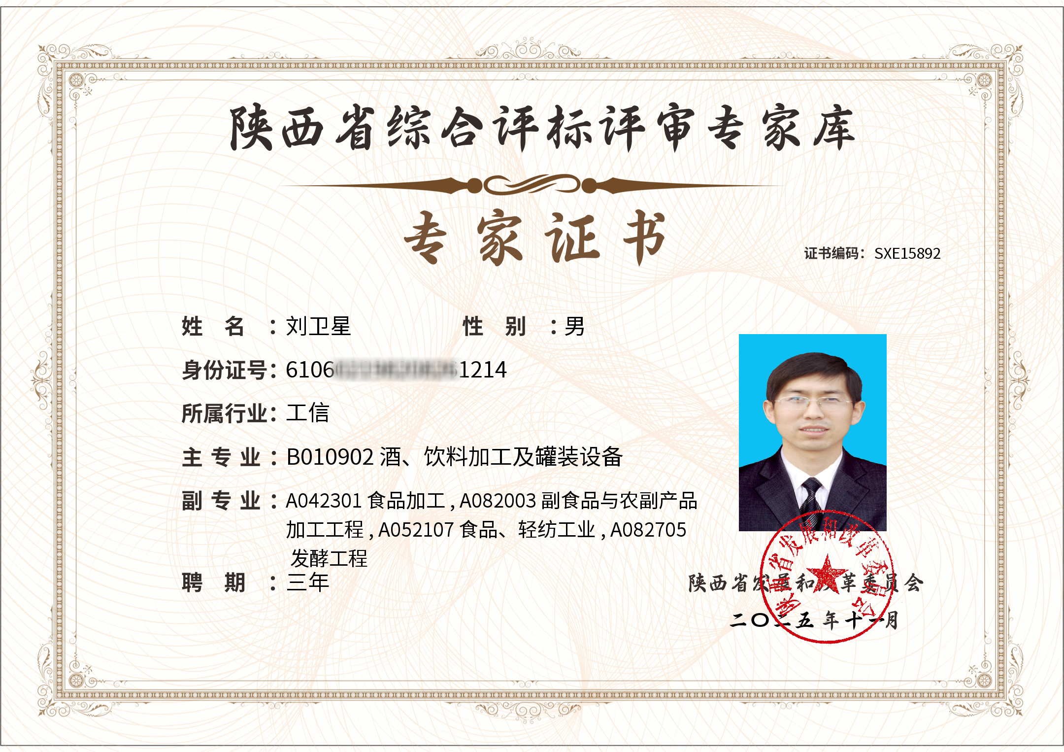 11月4日,轩辕酒业总经理刘卫星被陕西省发展和改革委员会评定为“白酒专家”,获颁专家证书并录入专家库。这一荣誉不仅是对他个人在白酒行业二十余年深耕细作的高度认可,更是对轩辕酒业在技术创新与品质把控上突出贡献的有力彰显。